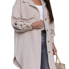 La giacca "Abbigail" combina un'eleganza senza sforzo con un comfort accogliente. Il suo tessuto leggero regala una sensazione di freschezza, mentre il taglio ampio offre una silhouette contemporanea. Questa giacca versatile è perfetta da sovrapporre a camicette, top o abiti, portando un tocco ricercato a qualsiasi look. Ideale per il lavoro, lo shopping in città o gli incontri con gli amici – un vero jolly per ogni occasione.