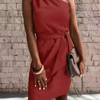 Alvena - Abito elegante monospalla con taglio obliquo per donna