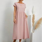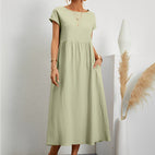 Il design chic ed elegante assicura che tu appaia alla moda, anche quando fai commissioni o partecipi a un evento informale. L'abito ha tasche che aggiungono un tocco di comfort e stile al design. L'abito Caroline è perfetto per chi vuole sentirsi a proprio agio, rimanendo comoda e fresca.