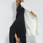 Il set Eva unisce eleganza e raffinatezza in un look armonioso. Composto da un abito lungo snellente e una giacca coordinata, offre una combinazione perfetta per una presenza elegante e moderna.