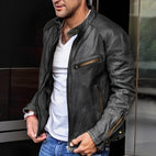 Hayden - Giacca in pelle classica con tasche a zip per uomo