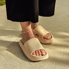 Il tacco più alto delle dita (≈15°) corregge la postura e calma l'arco del piede. I cinturini ultra-morbidi si adattano al piede, mentre la texture della suola offre un massaggio delicato ad ogni tuo passo.